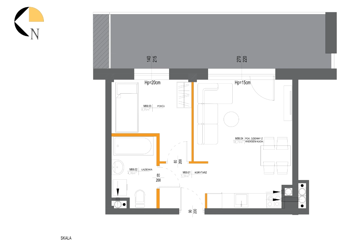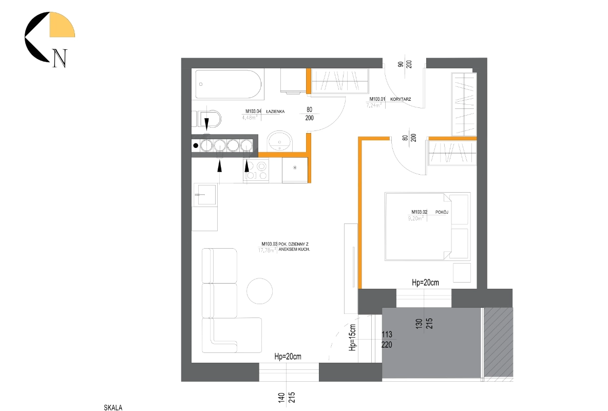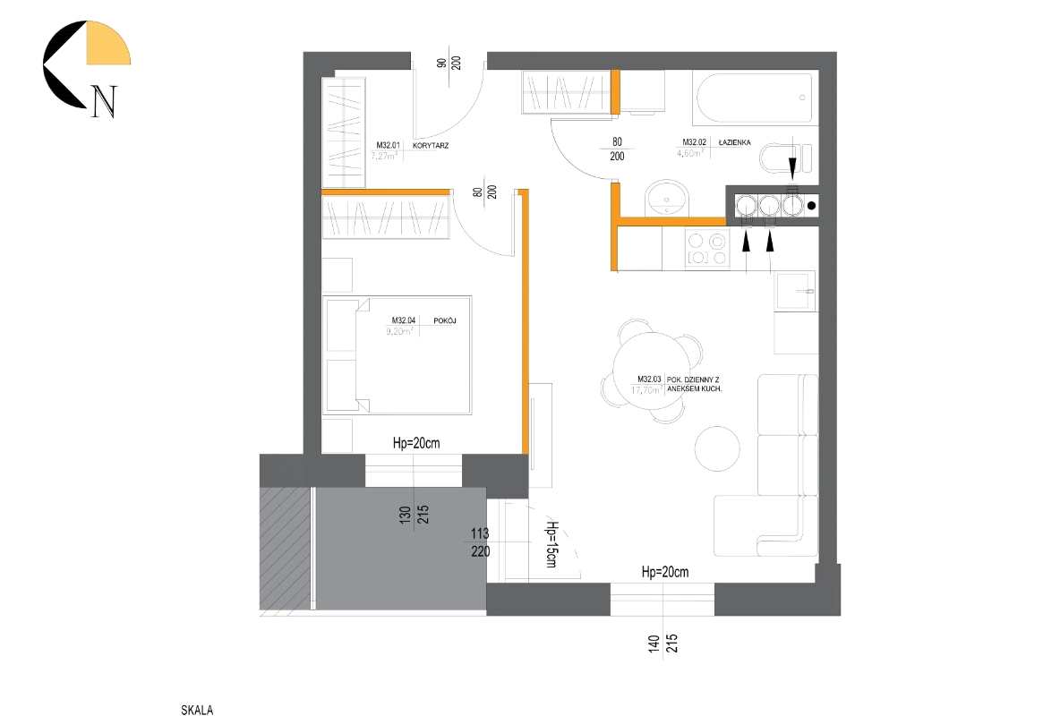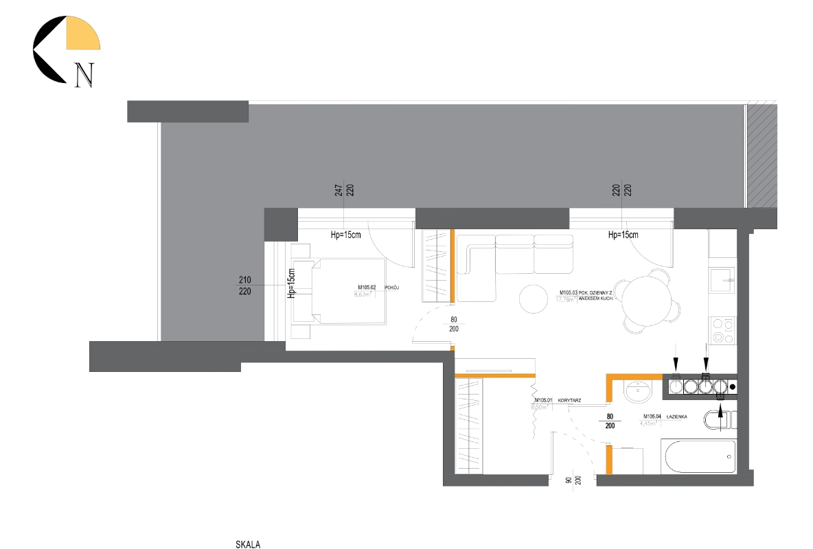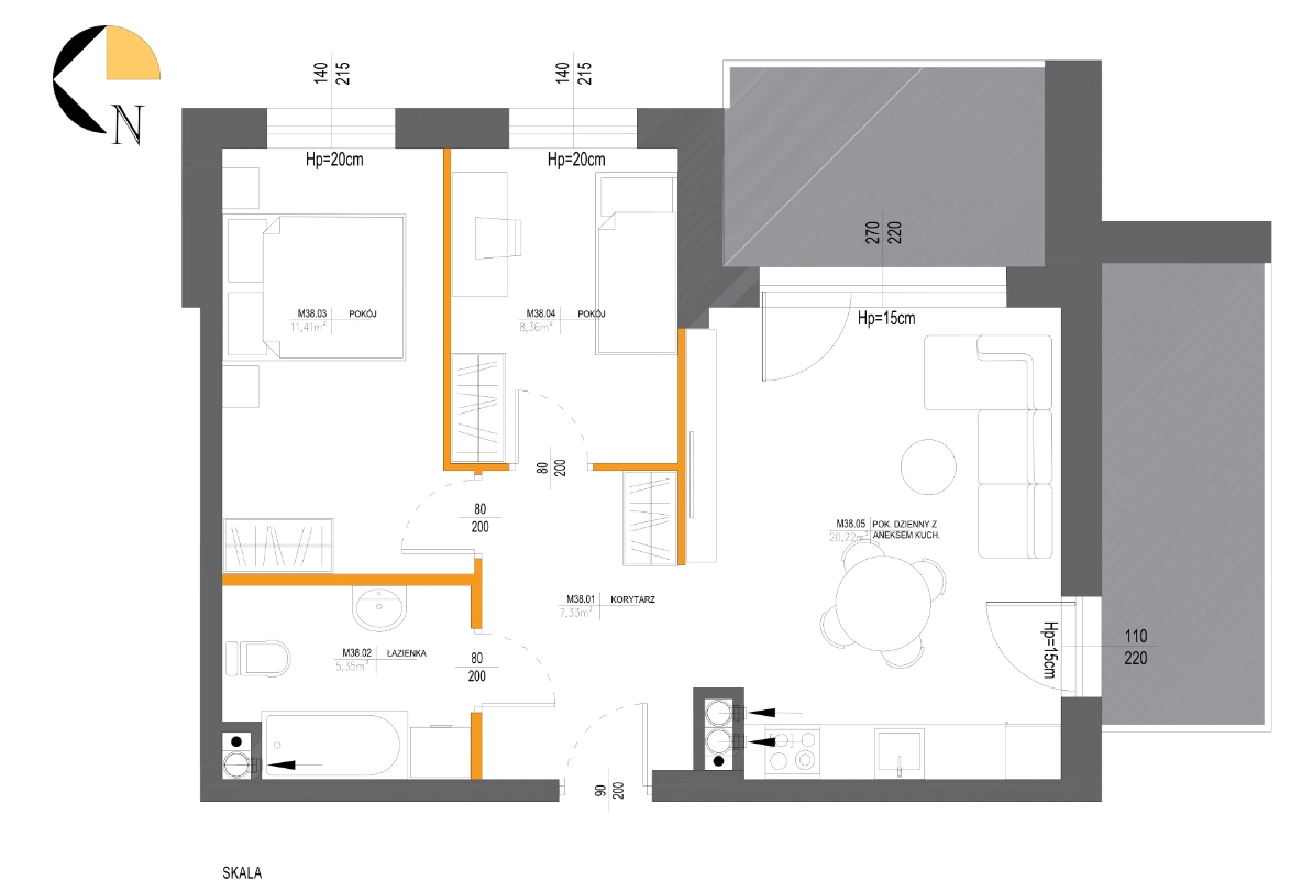 Metraż 38.64 m2