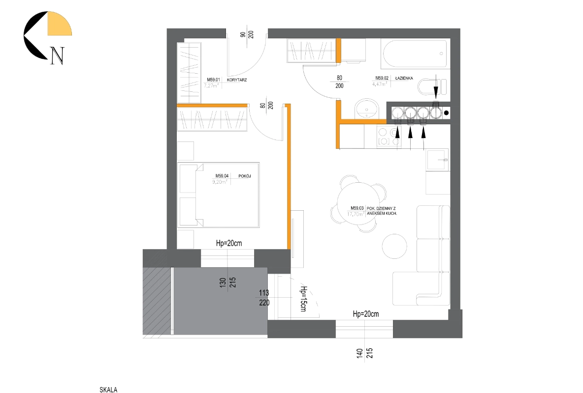 Metraż 59.72 m2