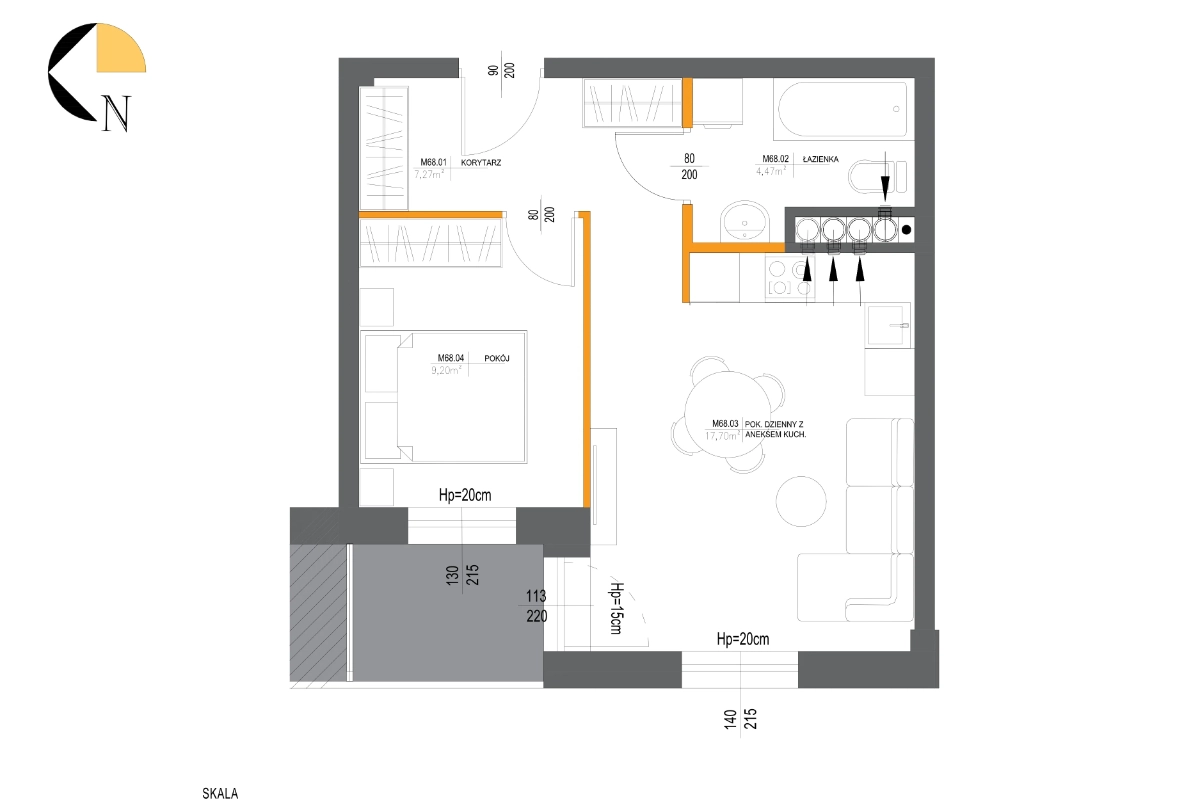 Metraż 38.67 m2
