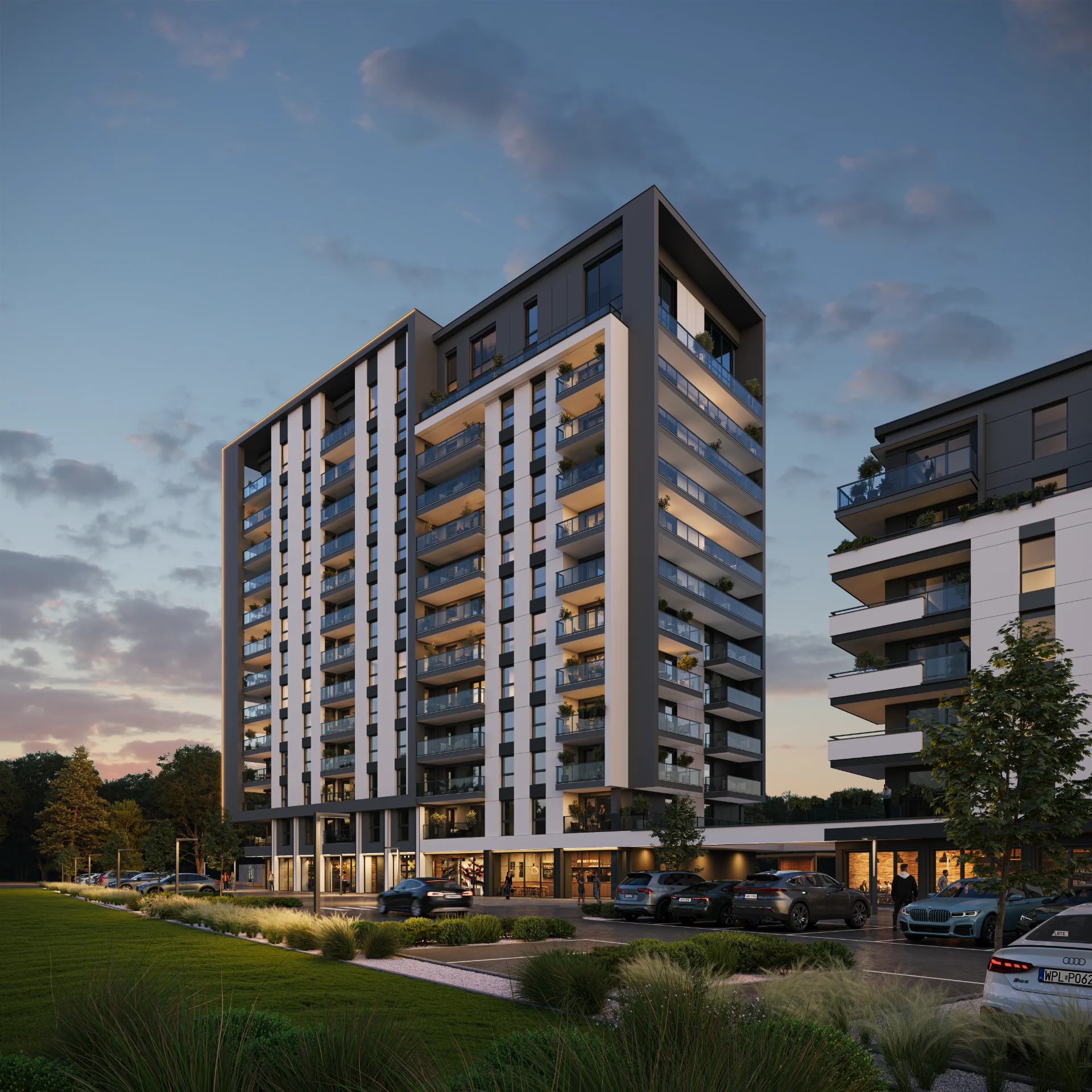 Nowoczesne, funkcjonalne w najlepszym wydaniu budynki mieszkalne zaprojektowane w przyjaznym i praktycznym otoczeniu. Kompleks 4 budynków mieszkalnych, o zróżnicowanej wysokości